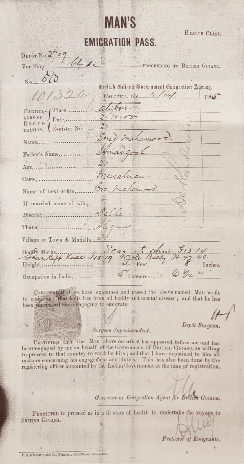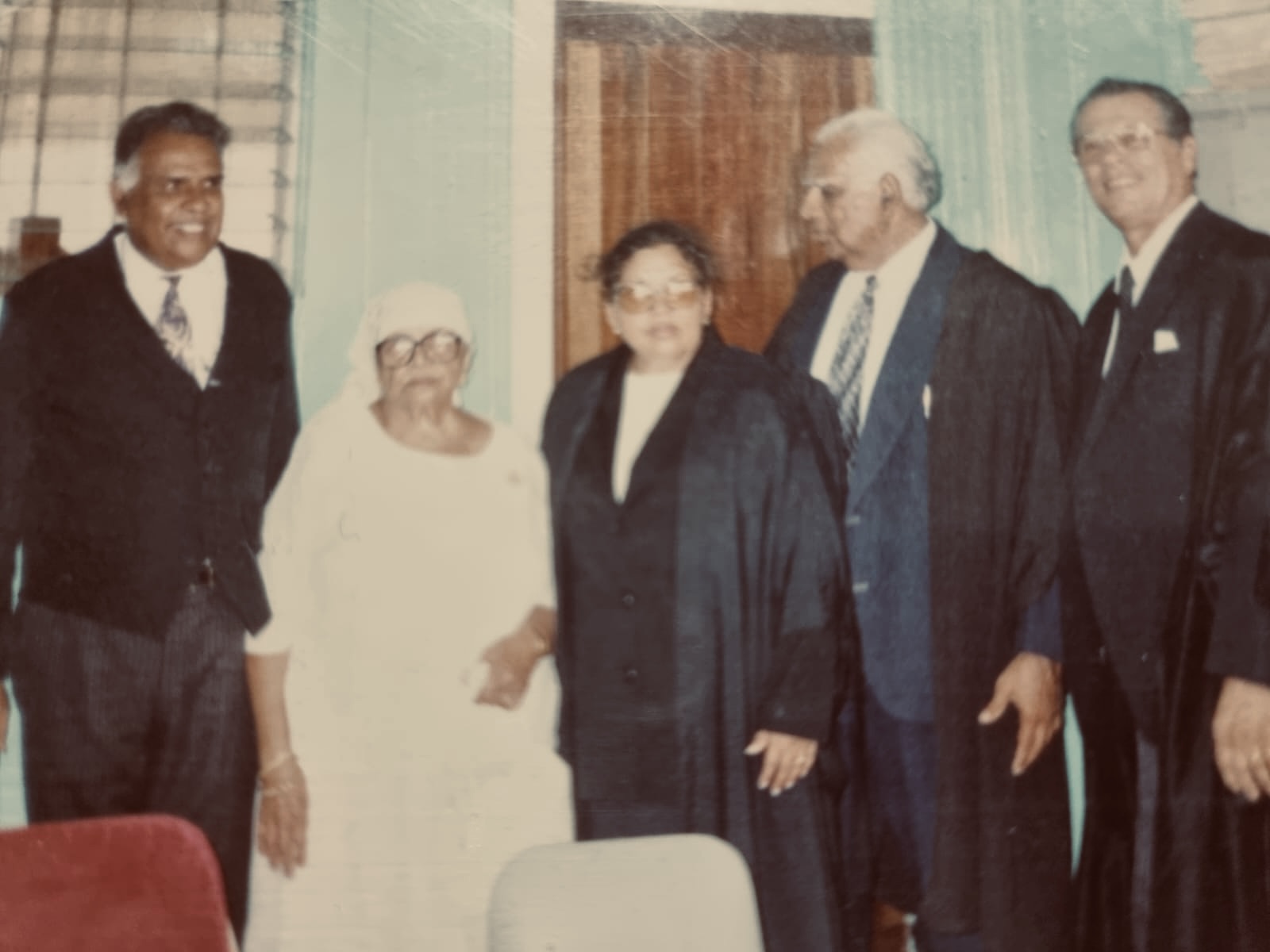 Begum Bibi Shariman, mother of President of Guyana Irfan Ali (standing right of her), another son Mohamed Aqtar Ali is standing to her left, her husband Mohamed Osman Ali is standing to right.