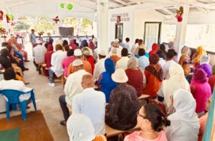 Standing: left to right, a Brother, Mr. Abdool Majeed, a Brother, Mr. Samad Shakoor, Haji Ramzan, Abdool Ghanie, a Brother, Moulana Ansari, Mr.
