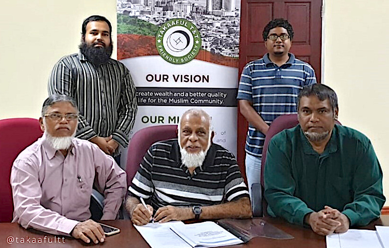 (Photo: Seated from left- Manwar Ali, President of Takaaful T&T; Farouk Khan, Trustee and Shazam Mohammed, Building Contractor. Standing from left- Adeeb Ali, Assistant Manager Takaaful T&T and Eng. Sharaz Hosein, Project Manager)